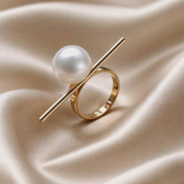 R/ Geometric KC Gold Plated Large White Pearl Ring for Womens